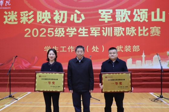 本网消息 11月6日下午,以“迷彩映初心,军歌颂山河”为主题的2025级新生军训歌咏比赛在东门体育馆举行,艺术学院新生合唱团凭借一曲恢弘壮阔的《保卫黄河》,以卓越的艺术表现力和震撼人心的现场感染力力压群雄,勇夺大赛一等奖,展现了艺院学子独特的青春风采。