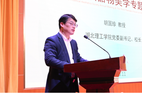 湖北理工学院党委副书记、校长胡国珍教授代表承办方致欢迎辞。他对各位专家学者的到来表示热烈欢迎,并介绍了湖北理工学院发展历程,强调了学校在“青铜故里”黄石举办此次器物美学论坛的独特意义。他表示本次论坛以“器物美学”为专题,恰逢数智时代技术变革与文化传承交融的关键节点,既回应了美学研究“接地气、连文脉”的时代需求,更为理工与人文的跨界对话搭建了宝贵平台。我们坚信,本次年会暨论坛的举办,必将推动各位专家学者围绕数智时代美学转型、器物美学理论深化等议题碰撞思想、凝聚共识;更将助力我校深化学科交叉、挖掘本土文化价值,为文化创新与设计实践贡献理工力量。期待本次论坛能成为推动理工与人文交叉融合的重要平台。